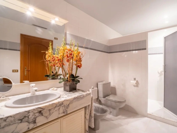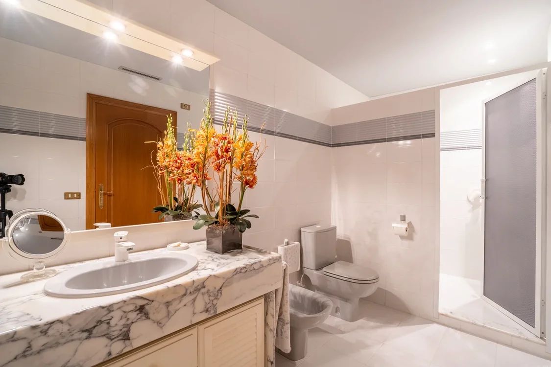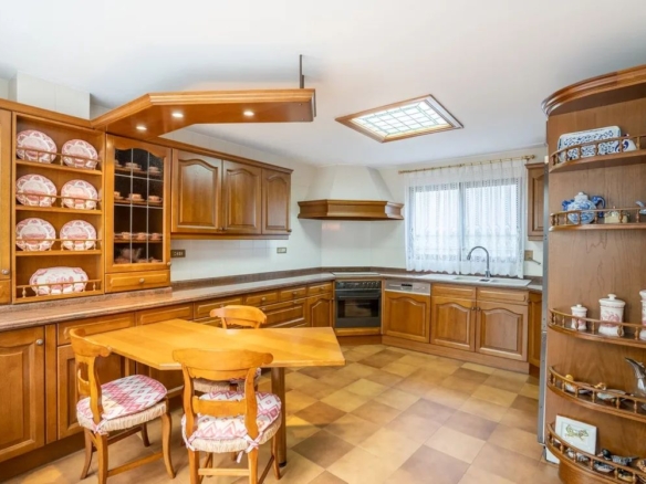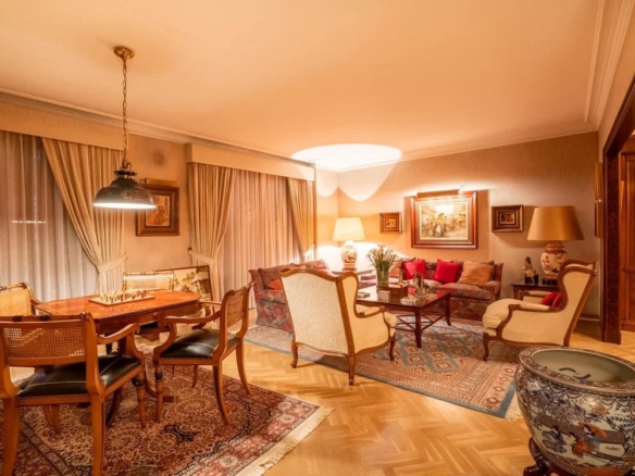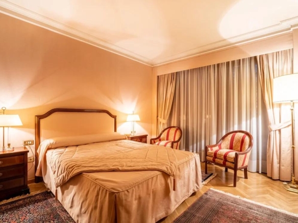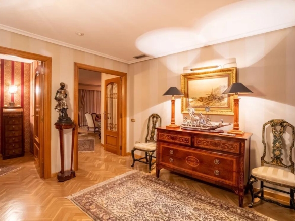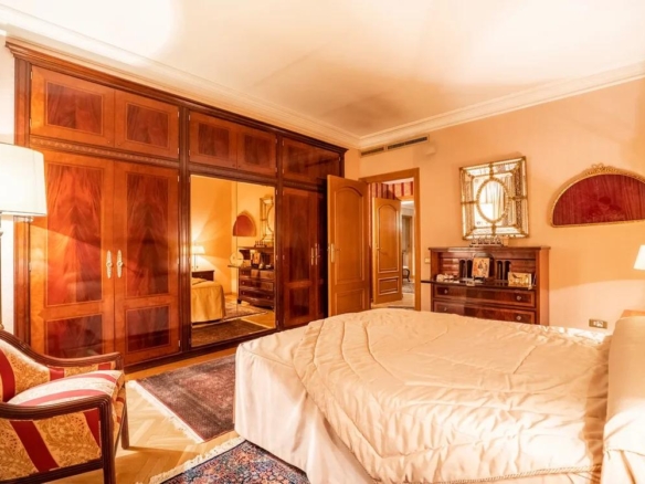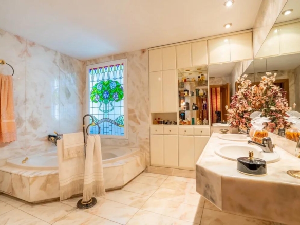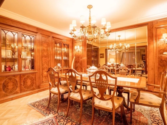 Con 680 m² construidos distribuidos en cuatro niveles (sótano + 3 plantas), esta propiedad destaca por su fachada de mármol Travertino, que refleja su carácter majestuoso y atemporal.